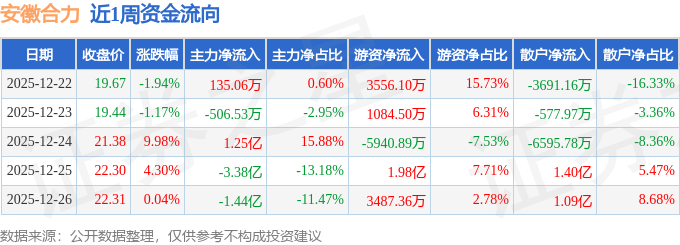 沪深股通持股方面,截止2025年12月26日收盘,安徽合力沪股通持股数为2631.3万股,占流通股比为295.0%。