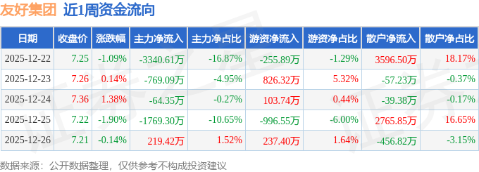 资金流向数据方面,本周友好集团主力资金合计净流出5723.93万元,游资资金合计净流出84.99万元,散户资金合计净流入5808.91万元。本周资金流向一览见下表: