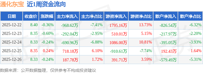 资金流向数据方面,本周通化东宝主力资金合计净流出1045.66万元,游资资金合计净流入2872.27万元,散户资金合计净流出1826.61万元。本周资金流向一览见下表: