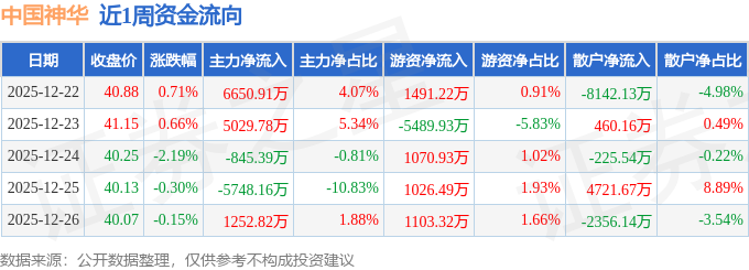 资金流向数据方面,本周中国神华主力资金合计净流入6339.96万元,游资资金合计净流出797.97万元,散户资金合计净流出5541.99万元。本周资金流向一览见下表: