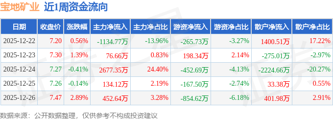 资金流向数据方面,本周宝地矿业主力资金合计净流入2206.0万元,游资资金合计净流出1542.2万元,散户资金合计净流出663.81万元。本周资金流向一览见下表: