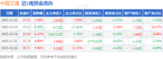 沪深股通持股方面,截止2025年12月26日收盘,中国卫通沪股通持股数为1579.86万股,占流通股比为37.0%。