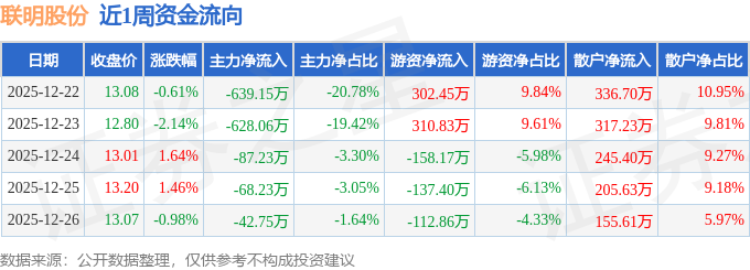 资金流向数据方面,本周联明股份主力资金合计净流出1465.42万元,游资资金合计净流入204.85万元,散户资金合计净流入1260.57万元。本周资金流向一览见下表: