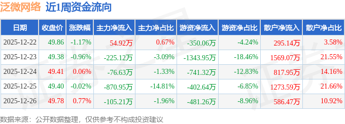 沪深股通持股方面,截止2025年12月26日收盘,泛微网络沪股通持股数为342.31万股,占流通股比为131.0%。