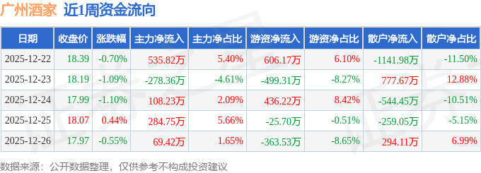 资金流向数据方面,本周XD广州酒主力资金合计净流入719.86万元,游资资金合计净流入153.85万元,散户资金合计净流出873.71万元。本周资金流向一览见下表: