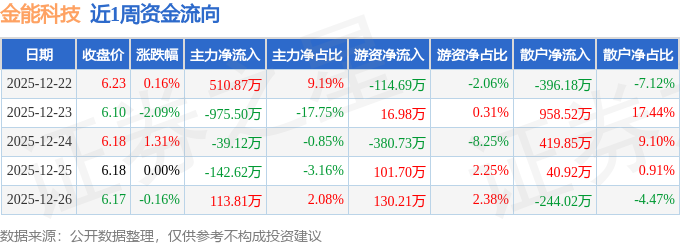 资金流向数据方面,本周金能科技主力资金合计净流出532.55万元,游资资金合计净流出246.53万元,散户资金合计净流入779.09万元。本周资金流向一览见下表: