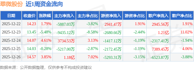 资金流向数据方面,本周翠微股份主力资金合计净流出4987.44万元,游资资金合计净流出8622.06万元,散户资金合计净流入1.36亿元。本周资金流向一览见下表:
