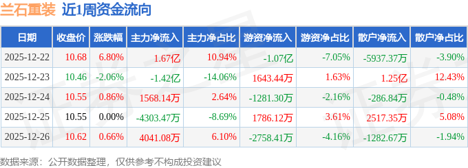 资金流向数据方面,本周兰石重装主力资金合计净流入3806.01万元,游资资金合计净流出1.14亿元,散户资金合计净流入7545.15万元。本周资金流向一览见下表: