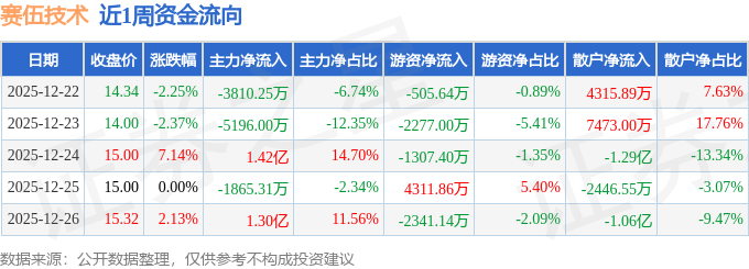 资金流向数据方面,本周赛伍技术主力资金合计净流入1.63亿元,游资资金合计净流出2119.32万元,散户资金合计净流出1.42亿元。本周资金流向一览见下表: