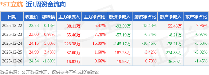 资金流向数据方面,本周*ST立航主力资金合计净流入431.31万元,游资资金合计净流出88.74万元,散户资金合计净流出342.57万元。本周资金流向一览见下表: