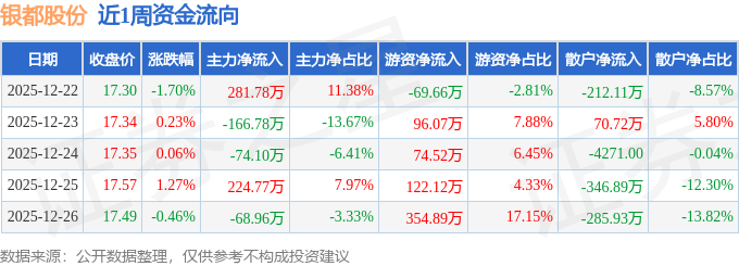 资金流向数据方面,本周银都股份主力资金合计净流入196.7万元,游资资金合计净流入577.94万元,散户资金合计净流出774.64万元。本周资金流向一览见下表: