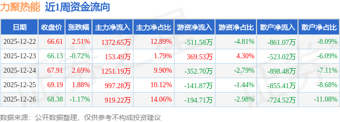 资金流向数据方面,本周力聚热能主力资金合计净流入4693.82万元,游资资金合计净流出831.33万元,散户资金合计净流出3862.49万元。本周资金流向一览见下表:
