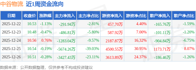 沪深股通持股方面,截止2025年12月26日收盘,中谷物流沪股通持股数为1718.95万股,占流通股比为82.0%。
