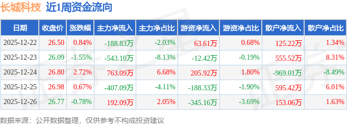 资金流向数据方面,本周长城科技主力资金合计净流出183.84万元,游资资金合计净流出276.37万元,散户资金合计净流入460.21万元。本周资金流向一览见下表: