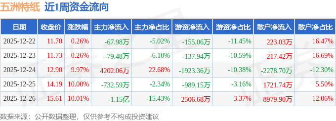 资金流向数据方面,本周五洲特纸主力资金合计净流出8164.57万元,游资资金合计净流出698.82万元,散户资金合计净流入8863.39万元。本周资金流向一览见下表: