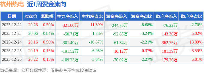 资金流向数据方面,本周杭州热电主力资金合计净流出331.86万元,游资资金合计净流出458.67万元,散户资金合计净流入790.53万元。本周资金流向一览见下表: