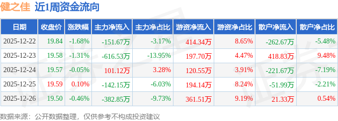 资金流向数据方面,本周健之佳主力资金合计净流出1192.07万元,游资资金合计净流入1288.24万元,散户资金合计净流出96.17万元。本周资金流向一览见下表: