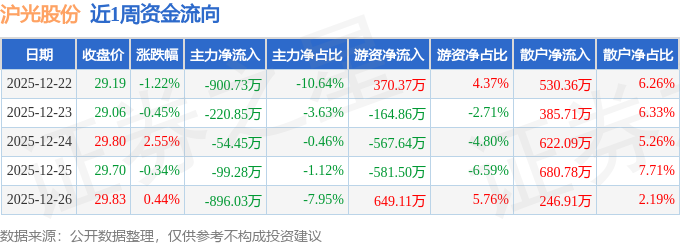 沪深股通持股方面,截止2025年12月26日收盘,沪光股份沪股通持股数为870.0万股,占流通股比为199.0%。