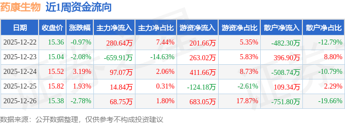 资金流向数据方面,本周药康生物主力资金合计净流出198.61万元,游资资金合计净流入1435.2万元,散户资金合计净流出1236.59万元。本周资金流向一览见下表: