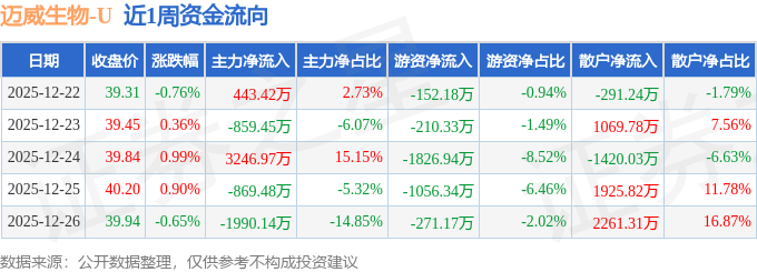 资金流向数据方面,本周迈威生物主力资金合计净流出28.68万元,游资资金合计净流出3516.97万元,散户资金合计净流入3545.65万元。本周资金流向一览见下表: