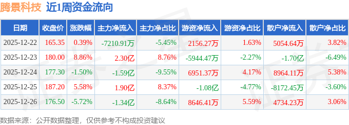 资金流向数据方面,本周腾景科技主力资金合计净流入5437.19万元,游资资金合计净流入993.22万元,散户资金合计净流出6430.41万元。本周资金流向一览见下表:
