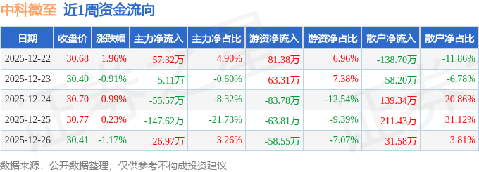 资金流向数据方面,本周中科微至主力资金合计净流出124.01万元,游资资金合计净流出61.44万元,散户资金合计净流入185.45万元。本周资金流向一览见下表: