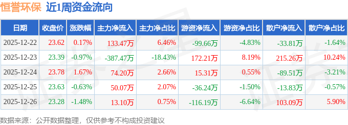 资金流向数据方面,本周恒誉环保主力资金合计净流出116.63万元,游资资金合计净流出64.58万元,散户资金合计净流入181.21万元。本周资金流向一览见下表: