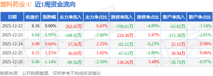 资金流向数据方面,本周盟科药业主力资金合计净流入147.99万元,游资资金合计净流入12.81万元,散户资金合计净流出160.8万元。本周资金流向一览见下表:
