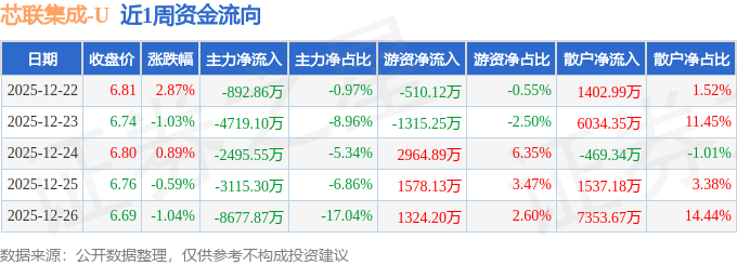 资金流向数据方面,本周芯联集成主力资金合计净流出1.99亿元,游资资金合计净流入4041.84万元,散户资金合计净流入1.59亿元。本周资金流向一览见下表: