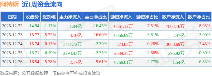 资金流向数据方面,本周阿特斯主力资金合计净流入3.32亿元,游资资金合计净流出3658.6万元,散户资金合计净流出2.96亿元。本周资金流向一览见下表: