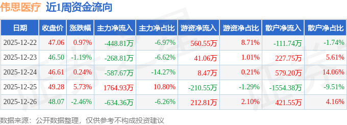 证券之星消息,截至2025年12月26日收盘,伟思医疗(688580)报收于48.07元,较上周的46.61元上涨3.13%。本周,伟思医疗12月25日盘中最高价报50.2元。12月24日盘中最低价报45.79元。伟思医疗当前最新总市值46.35亿元,在医疗器械板块市值排名74/127,在两市A股市值排名3541/5181。