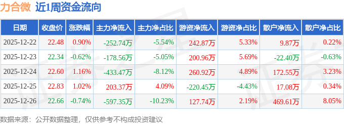 资金流向数据方面,本周力合微主力资金合计净流出1258.76万元,游资资金合计净流入612.04万元,散户资金合计净流入646.72万元。本周资金流向一览见下表: