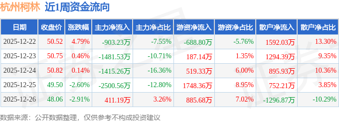 资金流向数据方面,本周杭州柯林主力资金合计净流出5889.4万元,游资资金合计净流入2651.71万元,散户资金合计净流入3237.69万元。本周资金流向一览见下表: