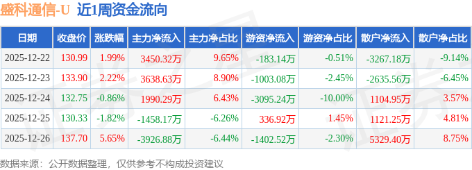 资金流向数据方面,本周盛科通信主力资金合计净流入3694.19万元,游资资金合计净流出5347.06万元,散户资金合计净流入1652.86万元。本周资金流向一览见下表: