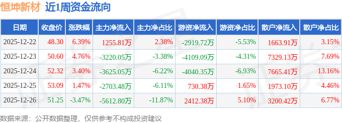资金流向数据方面,本周恒坤新材主力资金合计净流出1.39亿元,游资资金合计净流出7926.4万元,散户资金合计净流入2.18亿元。本周资金流向一览见下表:
