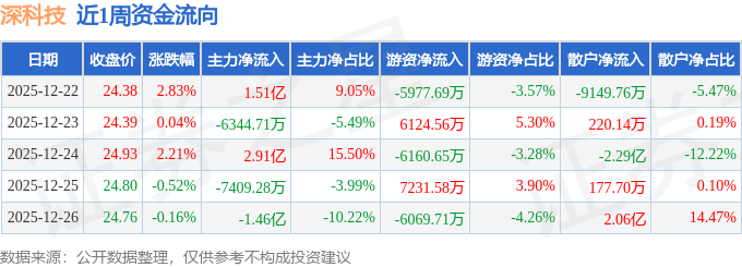 沪深股通持股方面,截止2025年12月26日收盘,深科技深股通持股数为1298.57万股,占流通股比为83.0%。