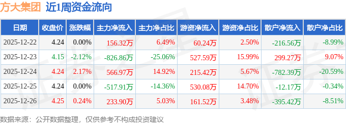 资金流向数据方面,本周方大集团主力资金合计净流出387.57万元,游资资金合计净流入1494.85万元,散户资金合计净流出1107.27万元。本周资金流向一览见下表:
