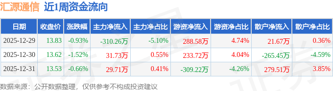资金流向数据方面,本周汇源通信主力资金合计净流出248.81万元,游资资金合计净流入213.08万元,散户资金合计净流入35.73万元。本周资金流向一览见下表:
