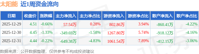 沪深股通持股方面,截止2025年12月31日收盘,太阳能深股通持股数为3418.9万股,占流通股比为95.0%。