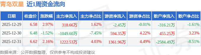 资金流向数据方面,本周青岛双星主力资金合计净流入491.58万元,游资资金合计净流入1953.87万元,散户资金合计净流出2445.45万元。本周资金流向一览见下表: