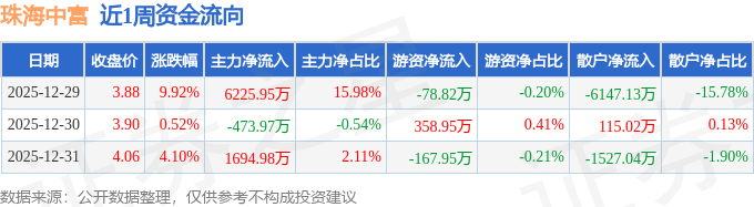 资金流向数据方面,本周珠海中富主力资金合计净流入7446.96万元,游资资金合计净流入112.18万元,散户资金合计净流出7559.14万元。本周资金流向一览见下表: