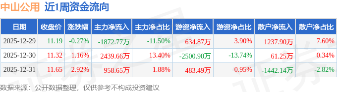 沪深股通持股方面,截止2025年12月31日收盘,中山公用深股通持股数为1471.28万股,占流通股比为117.0%。