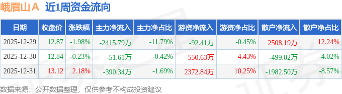 资金流向数据方面,本周峨眉山A主力资金合计净流出2857.74万元,游资资金合计净流入2831.06万元,散户资金合计净流入26.68万元。本周资金流向一览见下表: