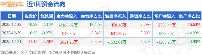 资金流向数据方面,本周中通客车主力资金合计净流入579.45万元,游资资金合计净流出442.33万元,散户资金合计净流出137.12万元。本周资金流向一览见下表: