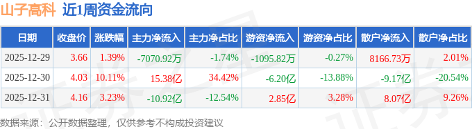 资金流向数据方面,本周山子高科主力资金合计净流入3.75亿元,游资资金合计净流出3.46亿元,散户资金合计净流出2915.15万元。本周资金流向一览见下表: