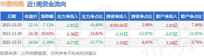 资金流向数据方面,本周华菱线缆主力资金合计净流出1.04亿元,游资资金合计净流出1.16亿元,散户资金合计净流入2.2亿元。本周资金流向一览见下表: