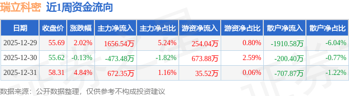 资金流向数据方面,本周瑞立科密主力资金合计净流入1855.41万元,游资资金合计净流入963.43万元,散户资金合计净流出2818.84万元。本周资金流向一览见下表: