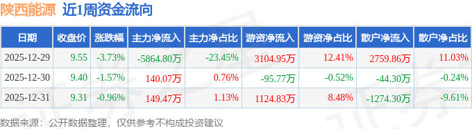 资金流向数据方面,本周陕西能源主力资金合计净流出5575.27万元,游资资金合计净流入4134.01万元,散户资金合计净流入1441.26万元。本周资金流向一览见下表: