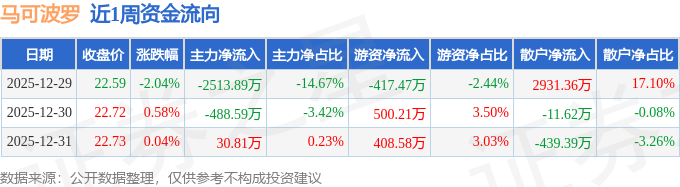 资金流向数据方面,本周马可波罗主力资金合计净流出2971.67万元,游资资金合计净流入491.32万元,散户资金合计净流入2480.35万元。本周资金流向一览见下表: