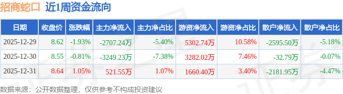 资金流向数据方面,本周招商蛇口主力资金合计净流出5434.93万元,游资资金合计净流入1.02亿元,散户资金合计净流出4810.23万元。本周资金流向一览见下表: